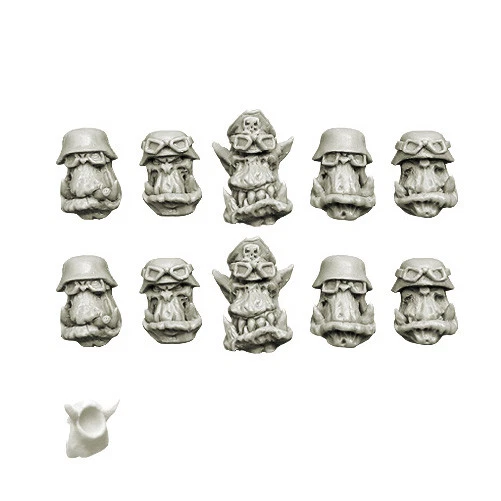 10 Heads With Helmet Glasses Ork Blitzkrieg Orcs Heads Goggles Bitz Spellcrow Ebay